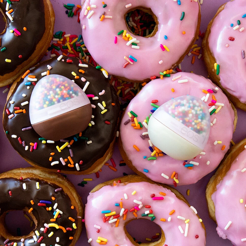 The tastiest lip balm ever! EOS celebrates Donut Day by launching a single day, small batch lip balm. This bakery inspired packaging design shows the flavor in a big way! Get it while it’s hot!